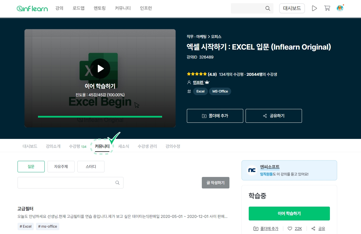 수강생과 지식공유자가 서로 자유롭게 글을 남길 수 있는 공간이에요. 질문, 자유주제, 스터디 등 주제에 맞춰 글을 쓸 수 있어요! 강의별 페이지 헤더 바로 아래에 있는 탭 메뉴를 클릭하면 커뮤니티로 들어갈 수 있어요.