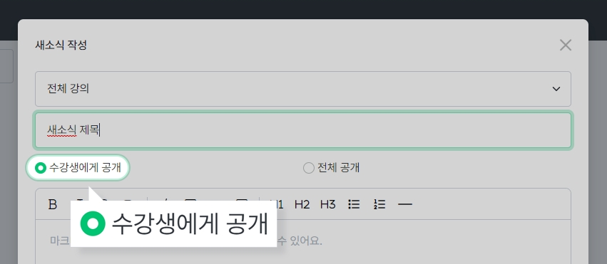 내 수강생들에게만 새소식을 보여주고 싶다면
