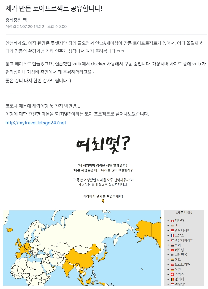 [자유주제]에는 같은 강의를 듣는 수강생이라면 공감(!)할 수 있는 재미있거나 유용한 글이 올라오기도 해요.
