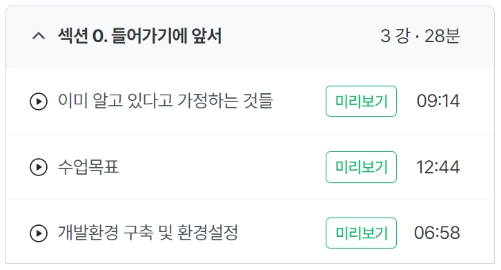 인프런 강의 커리큘럼은 크게 ‘섹션’과 ‘수업’으로 나뉩니다.
